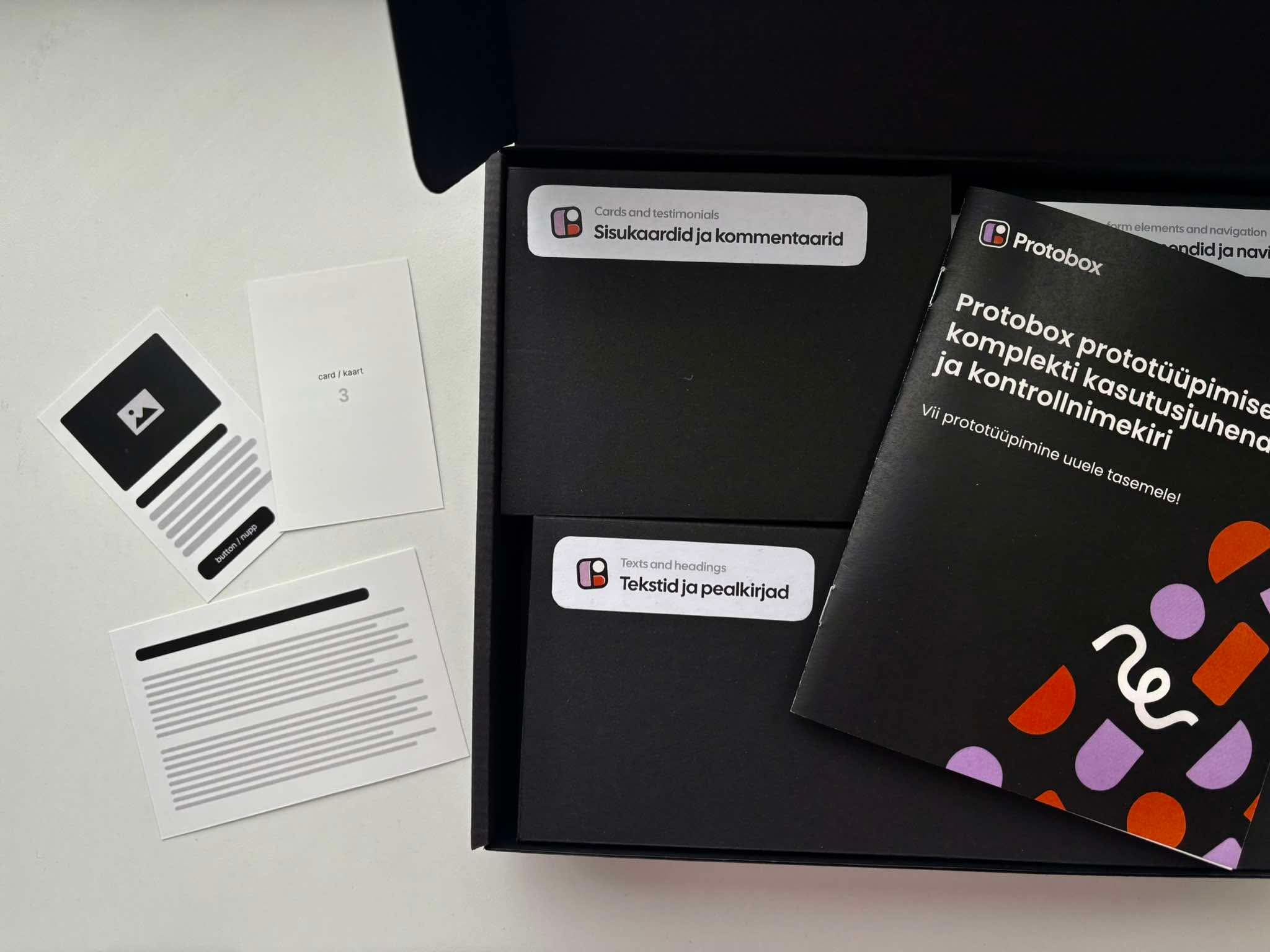 Protobox on füüsiline lo-fi prototüüpimise tööriist UX/UI disaineritele, tarkvaraarendajatele, õpetajatele ja õppijatele, kes soovivad ideid kiiresti visualiseerida ja testida ilma digitaalseid tööriistu kasutamata.